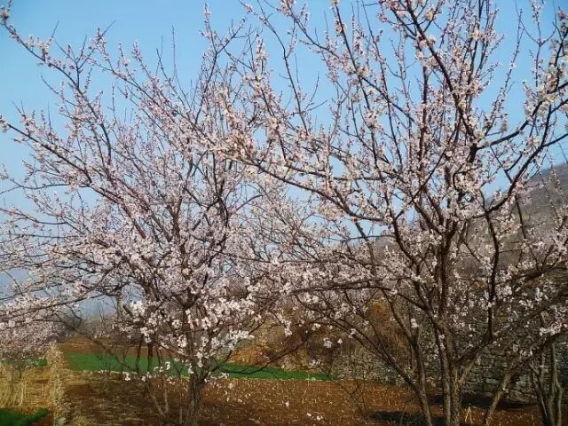 幸福嵧南股等村有着种植杏树收获杏仁(当地叫杏米)的传统,因此种植了大量的杏树。