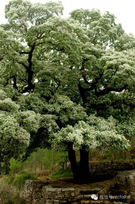 经专家考证,已经有上千年的历史,树形之大,树龄之长,为山东第一,被省林业厅命名为“齐鲁千年流苏树王”。树干粗四人拉手才能勉强围过来,每年四月,繁华朵朵,满树雪白的花覆盖了绿叶,三五里路便能闻到流苏树的花香。