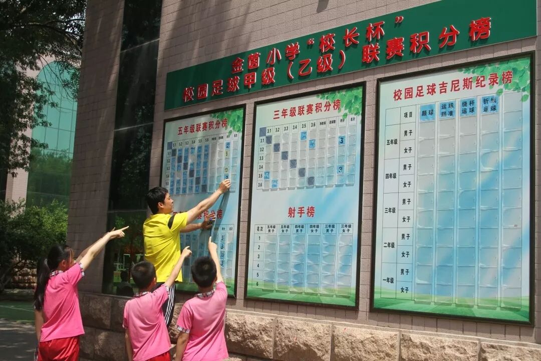 “驰骋绿茵场,快乐踢足球”是金茵学子健康的成长方式。学生强健了体魄,磨练了意志,身心素养才能得到全面发展。金茵小学凭借着这种契而不舍的精神,不断创新,发展足球,最终成立了校园足球办公室,完善制度管理,不断探索培育身体健康和人格健全的足球育人新模式,营造浓厚的足球特色育人氛围。学校认为“人人喜欢足球运动,学生身体素质和综合能力不断提高;班班热爱足球比赛,班级团结凝聚力和集体荣誉感才能不断提升。”