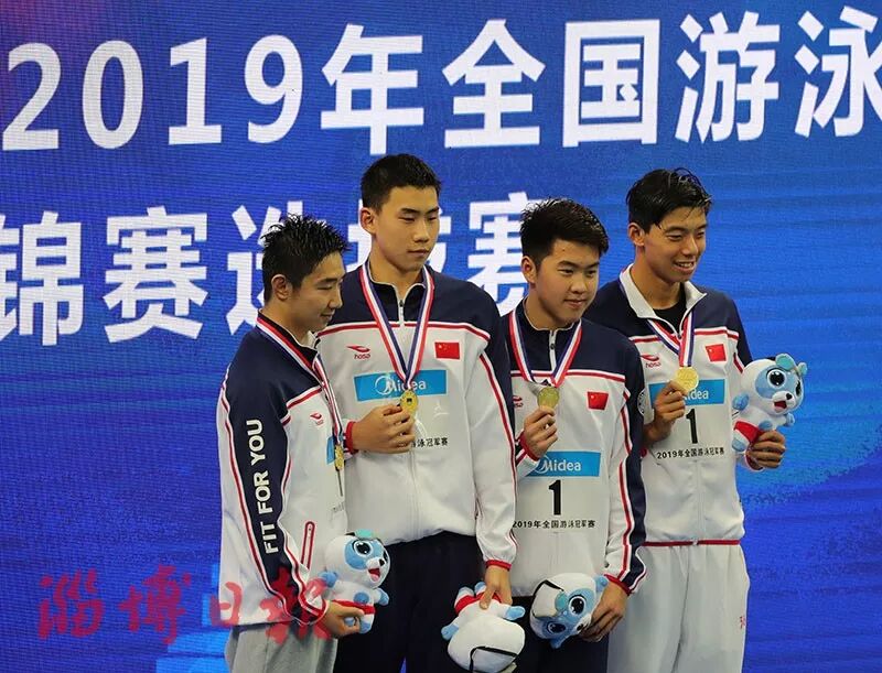 获得男子4x200米自由泳接力金牌的山东队员
