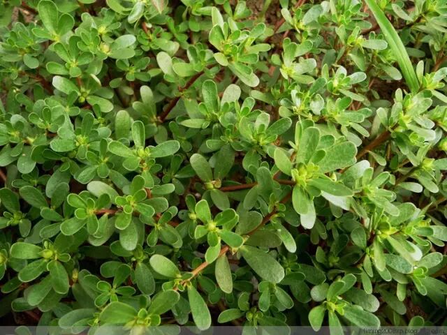 【性状】全株无毛。茎平卧或斜倚,伏地铺散,多分枝 ,圆柱形,长10-15厘米淡绿色或带暗红色。茎紫红色,叶互生,有时近对生,叶片扁平,肥厚,倒卵形,似马齿状,长1-3厘米,宽0.6-1.5厘米,顶端圆钝或平截,有时微凹,基部楔形,全缘,上面暗绿色,下面淡绿色或带暗红色,中脉微隆起;叶柄粗短。