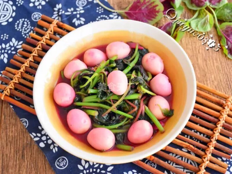苋菜180g、鹌鹑蛋150g、葱 / 姜 / 蒜 / 花椒 / 盐 / 胡椒粉 / 香油适量。