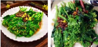 油菜花焯水不易煮太久,断生即可,这样口感才清脆,而且能最大程度保持维生素。