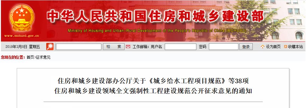 《38项住房和城乡建设领域全文强制性工程建设规范公开征求意见的通知》