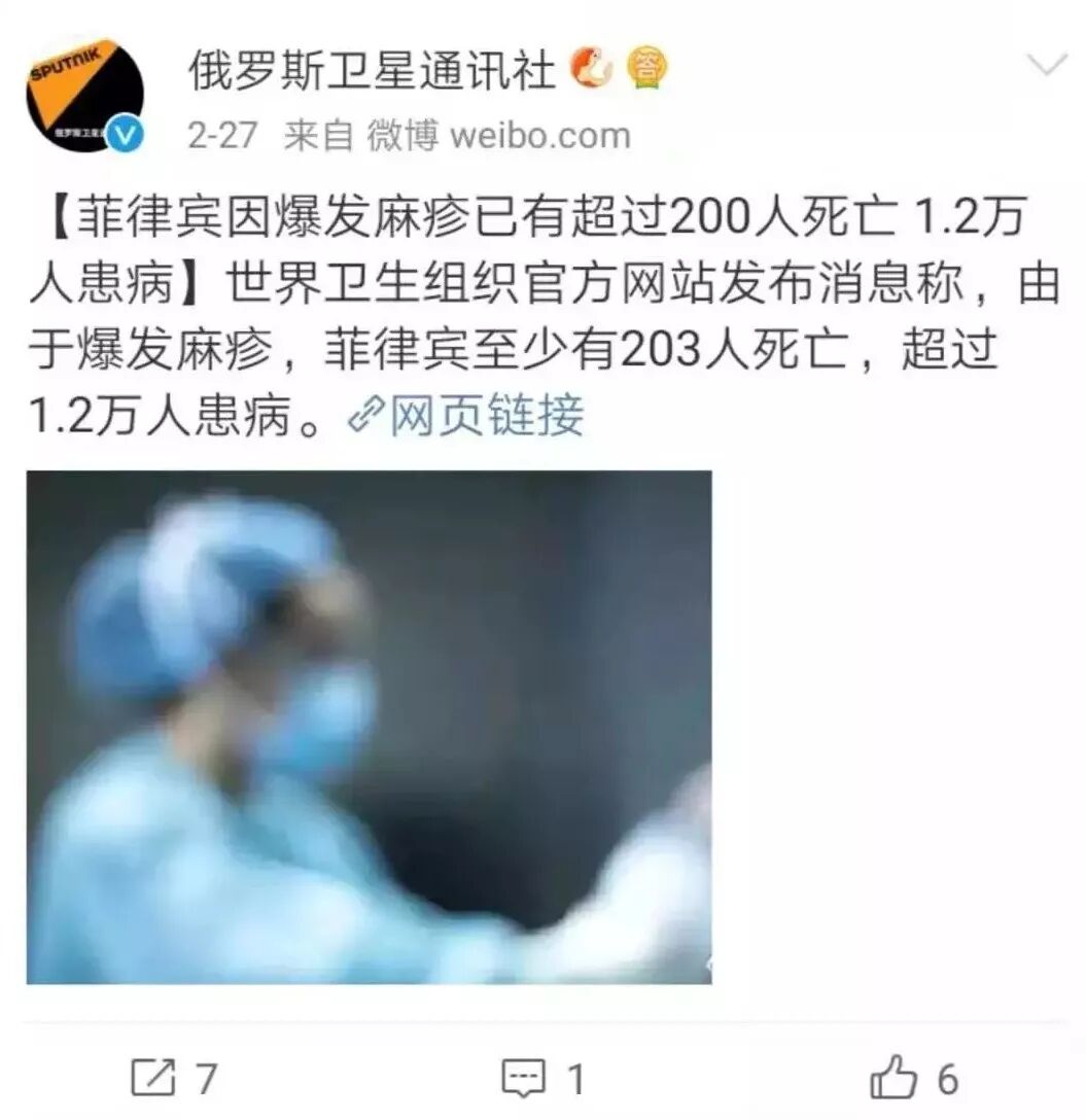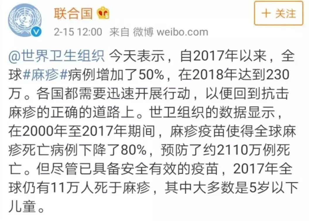 菲律宾:据菲律宾卫生部报道,从2019年开年至2月16日,短短的1个半月时间里,确诊的麻疹病例已达8443个,其中死亡人数为136人,创下过去十年同一时期的新高!而这患病者,其中约有一半是没有接种过疫苗的儿童!