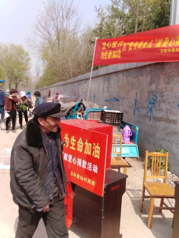 聂仙村支部书记兼村主任崔永海同志得到消息及时向街道领导做了汇报,齐陵街道领导当即指示:扩大宣传力度,积极为生命加油!在街道领导和村两委的组织下,4月3日~5日为期三天,带头捐款并发动群众开展主题为“爱心接力,为生命加油”的献爱心捐款。