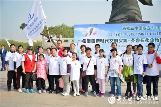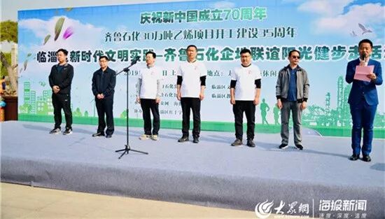 太公湖畔微风徐徐,时令鲜花争奇斗艳。今天,庆祝新中国成立70周年-齐鲁石化30万吨乙烯项目开工建设35周年,临淄区新时代文明实践-齐鲁石化企地联谊阳光健步走活动在临淄太公湖生态休闲公园举行。