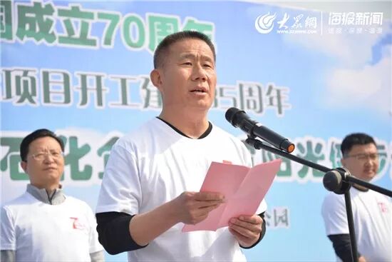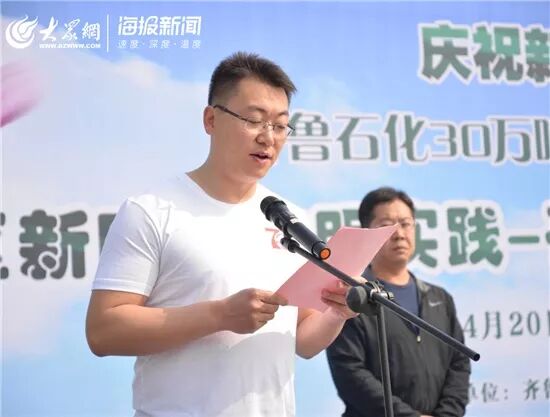 齐鲁石化公司工会副主席杜明迤宣布健步走活动正式开始