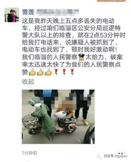 4月8日,一位名叫雪莲的女士发送了一条详细记录自己电动车失而复得的消息,大家为民警快速破案纷纷点赞。