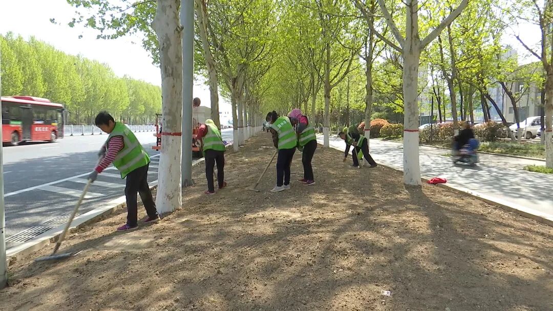 在临淄大道,园林工人正在对主干道周边绿化带的裸露地补植草坪,他们或深翻土地,或撒种浇水,忙而不乱。此次补植的要求就是黄土无裸露, 绿化无死角。