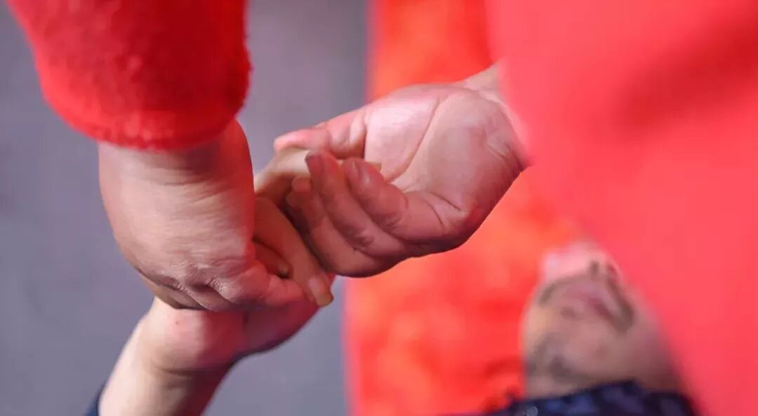 ↑4月28日,郑作霞帮助前夫乔峰做手指恢复锻炼。