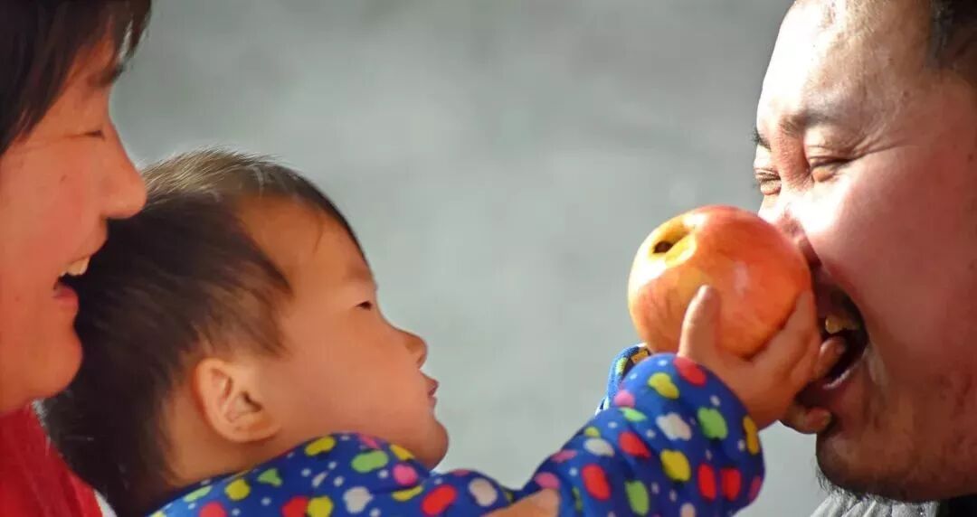 ↑4月28日,郑作霞抱着与丈夫王寿法的女儿陪前夫乔峰玩耍。