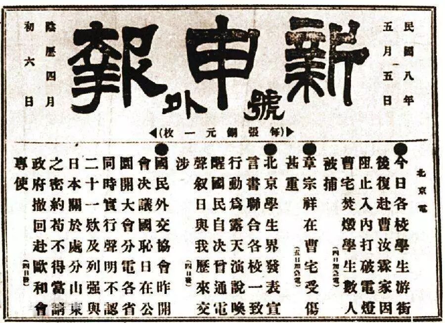 5月4日,北京高校学生在天安门前集会,打出“誓死力争”“还我青岛”“拒绝和约签字”“外争主权,内惩国贼”等口号,要求惩办曹汝霖、陆宗舆、章宗祥,强烈要求拒绝在合约上签字。北京的学生运动很快得到其他地区学生的积极响应和广大工人的支援,形成了一场由先进青年知识分子发起,各界人民群众共同参与的彻底反帝反封建的爱国运动,把爱国主义精神发展到了一个高峰。