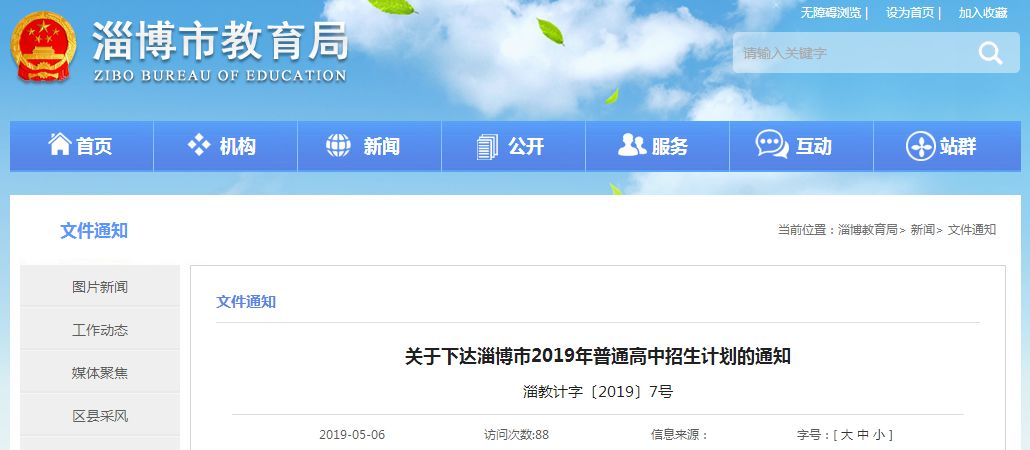 关于下达淄博市2019年普通高中招生计划的通知