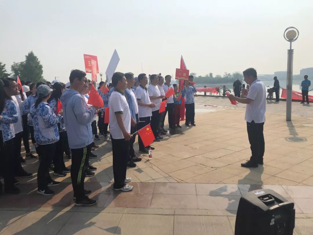 上午八点半,临淄支行及区住房保障事务服务中心参赛员工准时在太公湖铜像前集合,比赛沿湖畔进行,全程约10公里,共计一百余人参赛。