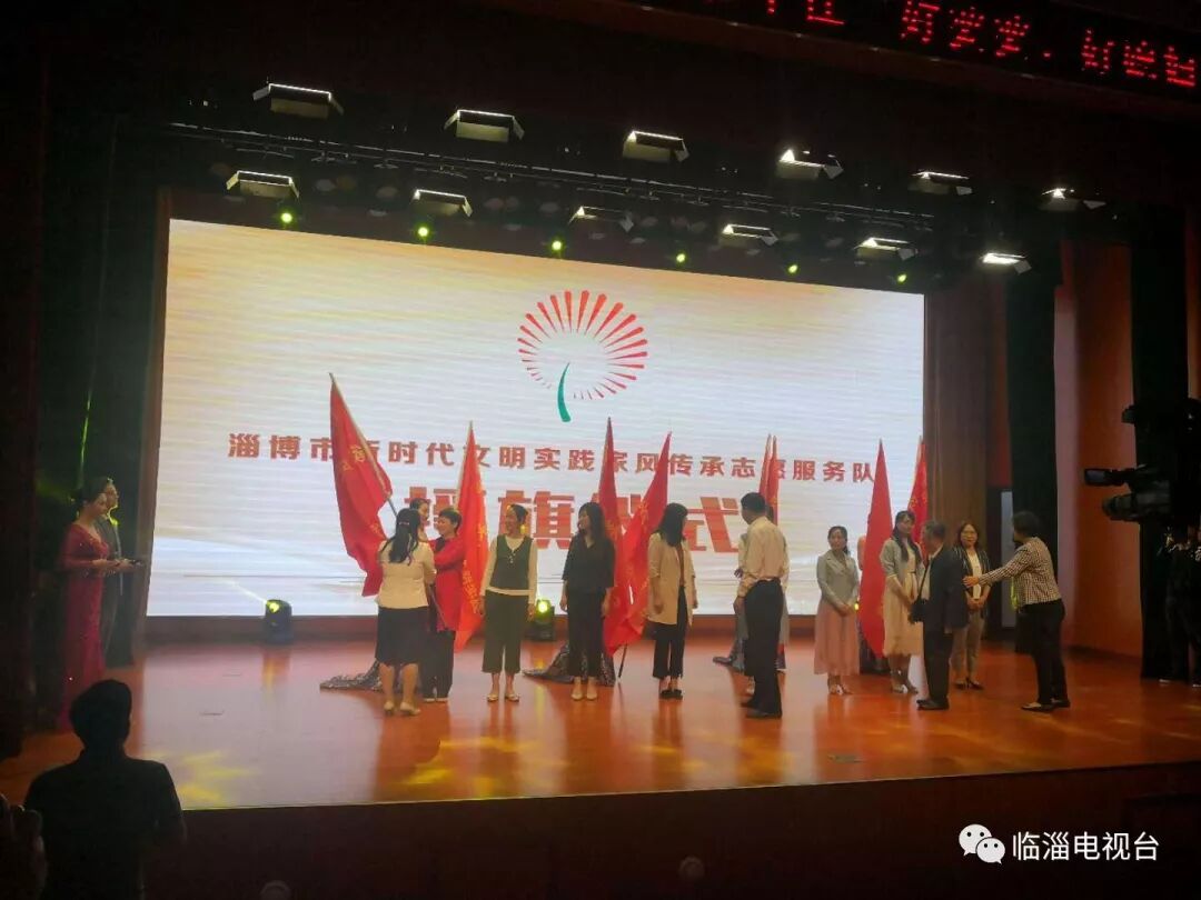 与会领导为2019年度淄博市“最美家庭”、淄博市十佳“好婆婆”、淄博市十佳“好媳妇”代表颁奖,为家风传承志愿服务队代表授旗。