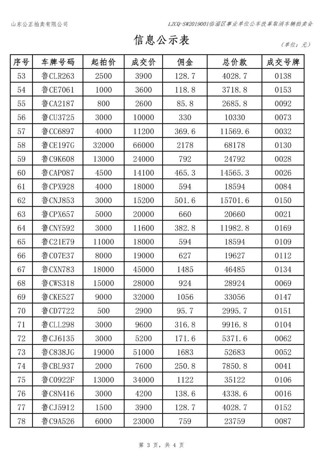 临淄事业单位公车改革取消车辆拍卖会 交款说明