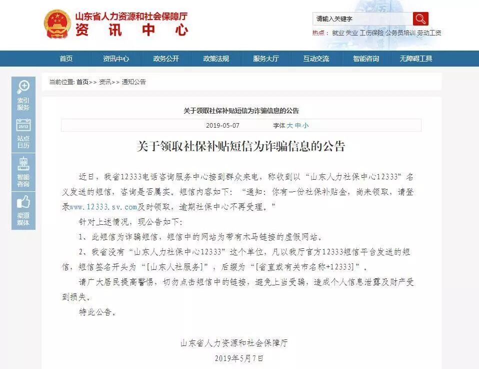 近日,山东省人力资源和社会保障厅官网就这些短信发出紧急公告,提醒领取社保补贴的短信为诈骗信息!