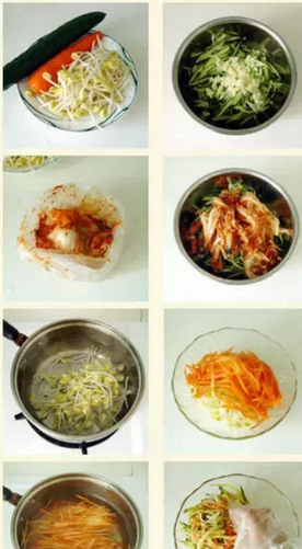1、汆烫好的菜捞起泡在冰水里一会儿,可以保持黄豆芽的脆嫩;