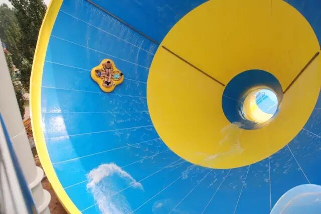 游客乘坐特别设计的双人浮圈,通过长长的管道