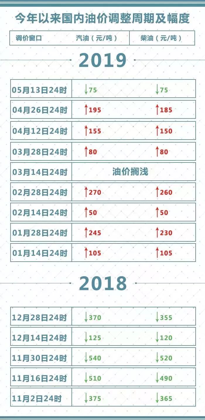 2019年国内成品油调价已呈现“七涨一跌一搁浅”的格局。截至上次调价,汽油价格累计每吨上调1025元,柴油价格累计每吨上调985元。