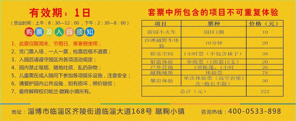 购票地点:淄博市临淄区临淄大道168号蹴鞠小镇游客服务中心