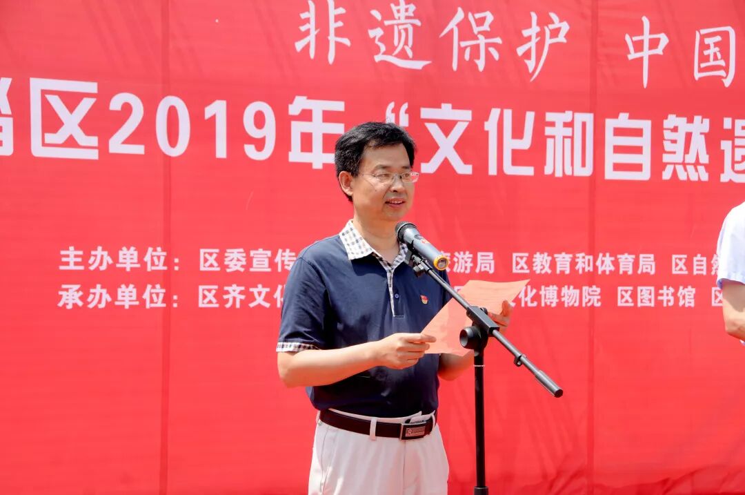 本次活动由区委宣传部、区文化和旅游局、区教育和体育局、区自然资源局、区融媒体中心主办。区委常委、宣传部部长国爱梅出席活动。主办单位相关领导,各镇街道分管领导、文化站长,区非物质文化遗产保护协会会员,区文化和旅游、自然资源系统干部职工、文化志愿者参加活动。