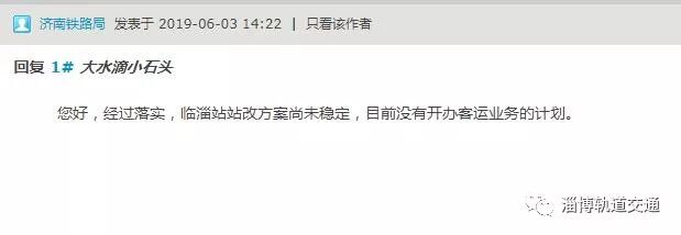 市民:尊敬的济南铁路局,您好,2018年3月份,淄博市铁路办致函贵局,商请恢复办理胶济客专临淄站客运业务。不知道现在进展到什么地步了?作为一名临淄市民,非常希望临淄站能恢复客运业务,谢谢。