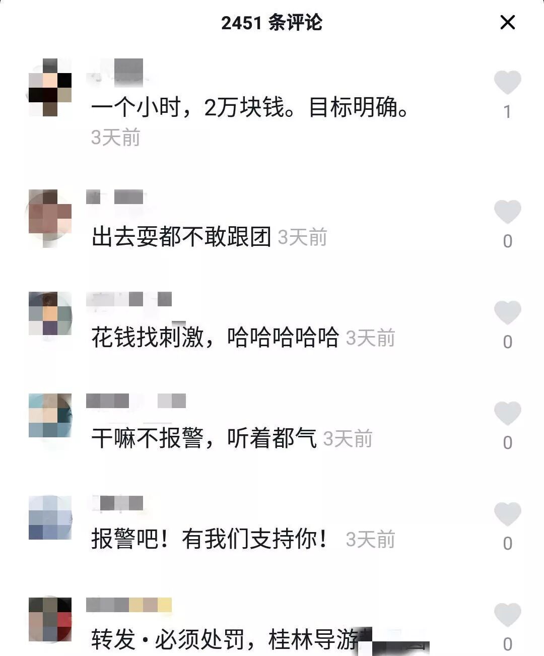 6月10日晚,一条“这个导游好嚣张”的视频中,一名导游正对没有购物的游客喊话,称既然来到了桂林就要花钱,“不管游客图桂林哪一样来的,既然来了,就得马上下车,在一个小时内花两万块钱。”视频在互联网上迅速传播,部分网站评论量达到数万条。