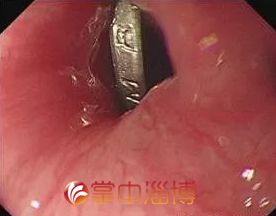 孩子出现了恶心、吞咽困难等表现,面部表情十分痛苦,所幸硬币及时取出,对孩子未造成严重的损伤。