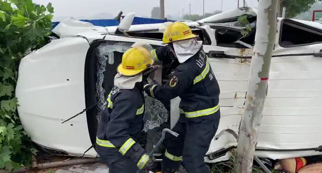 2019年7月10日12点25分,临淄区淄江路发生一起事故5人被困,辖区淄博市消防支队雪宫中队接到报警后立刻赶赴现场。