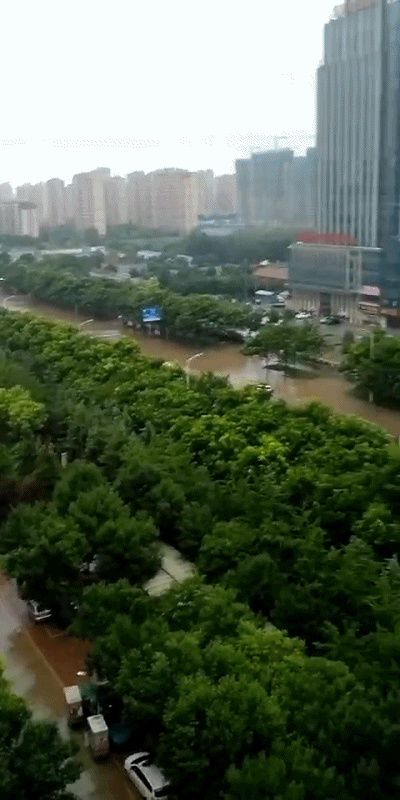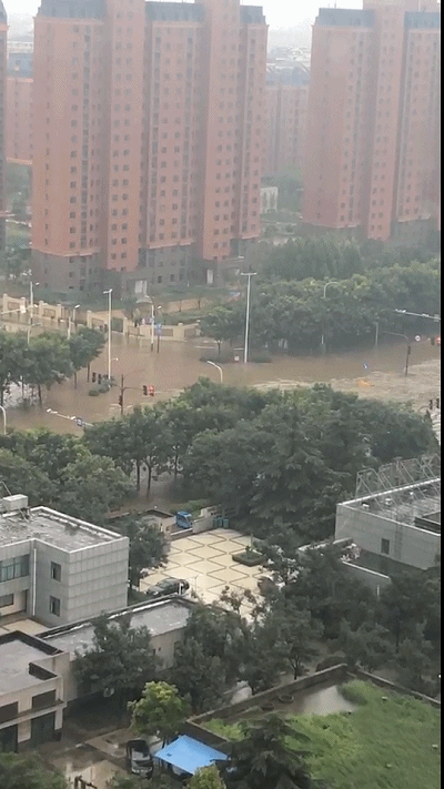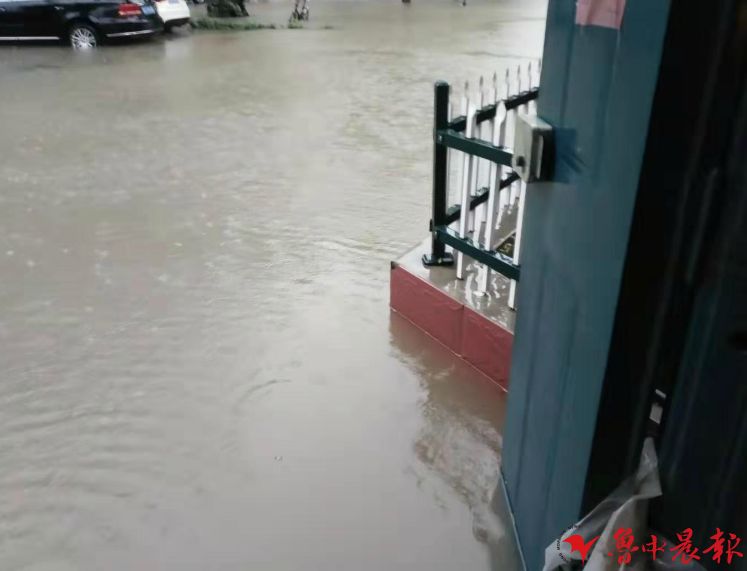 今天8点,齐都花园50号楼前积水明显,水深接近1米。