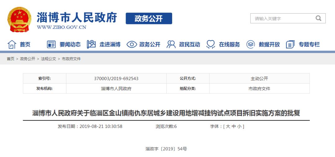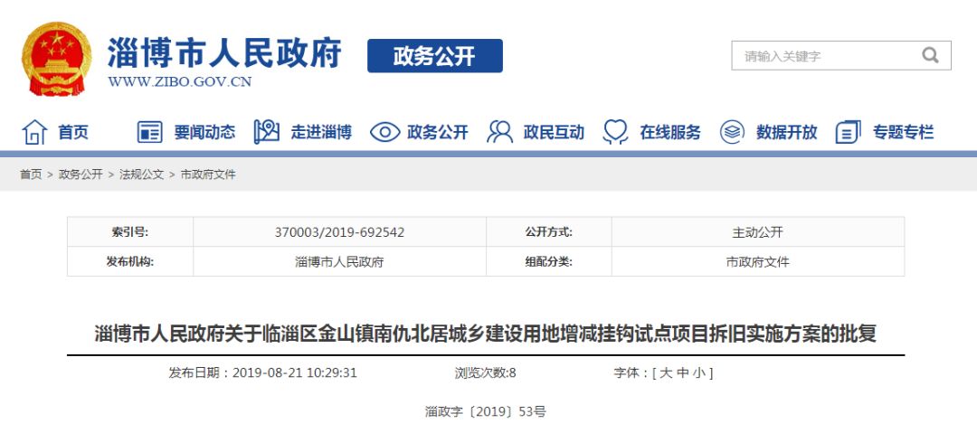 8月21日,淄博市人民政府网发布关于