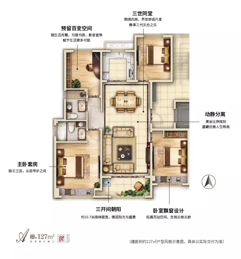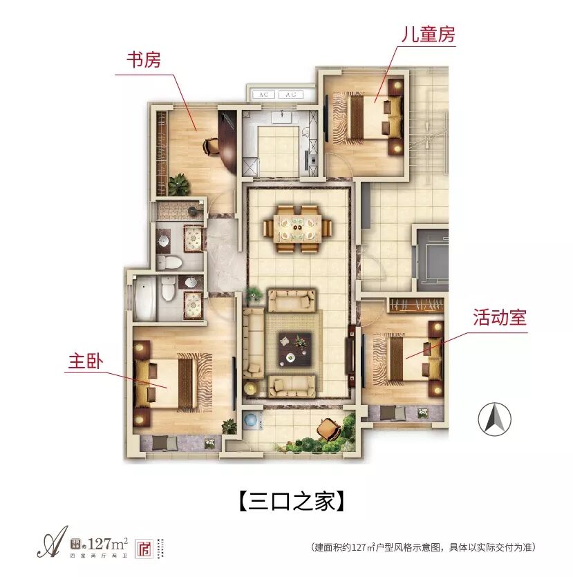 精工匠造 淄江府,致敬临淄,建面约127㎡宽境四室,见证美好生活家