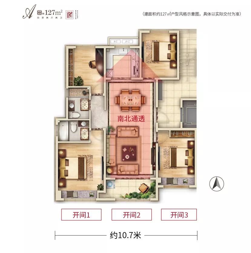 淄江府127㎡四室产品,约10.7米超大面宽设计