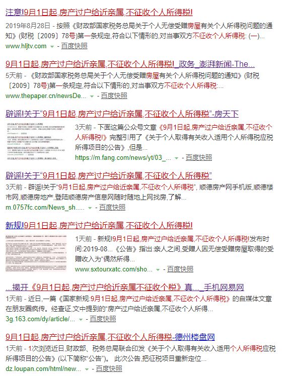 看到《9月1日起,房产过户给近亲属,不征收个人所得税》这个题目,很容易让人误以为是从9月1日起才开始施行“房产过户给近亲属不征收个人所得税的政策”,继而给人“9月1日以前房产过户给近亲属,要征收个人所得税”的结论。事实真是这样吗?肯定不是!!!