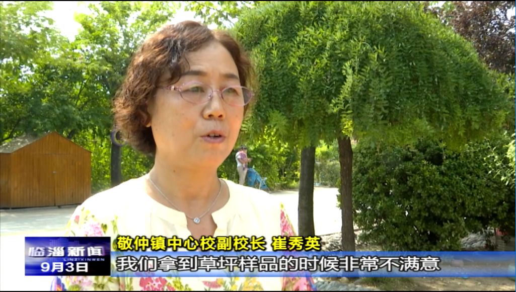 敬仲镇中心校副校长 崔秀英:我们拿到草坪样品的时候非常不满意,觉得这种质量的草坪不行,坚决不能给孩子用,当时的原计划是对场地进行小面积的修补,结果在施工前正好下了一场雨,发现雨后的场地上有多处积水,当时就想,如果场地处理不平的话,孩子们活动时可能会绊倒、扭伤脚,如果要做的话,一定要做最安全的,最环保的。