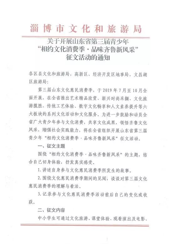 山东省第三届青少年“相约文化消费季·品味齐鲁新风采”征文活动开始啦!如果你家孩子有写作方面的特长,千万别错过这次机会哦~