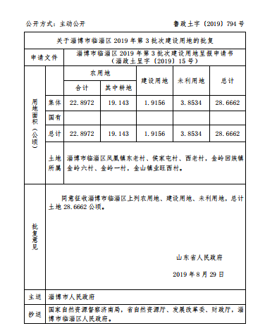 同意征收淄博市临淄区上列农用地、建设用地、未利用地,总计土地28.6662公顷。