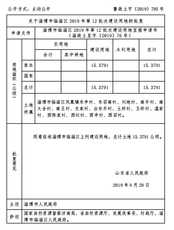同意征收淄博市临淄区上列建设用地,总计土地15.3791公顷。