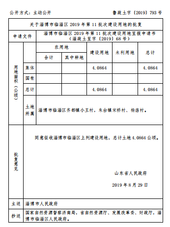 同意征收淄博市临淄区上列建设用地,总计土地4.0864公顷。