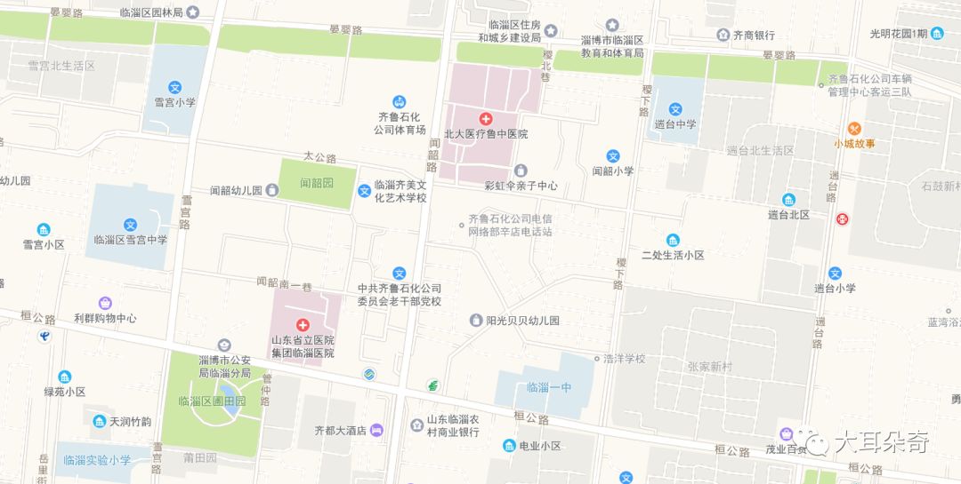 临淄城区部分区域地图(含晏婴路、雪宫路、闻韶路、稷下路、遄台路)