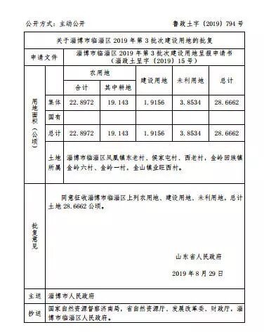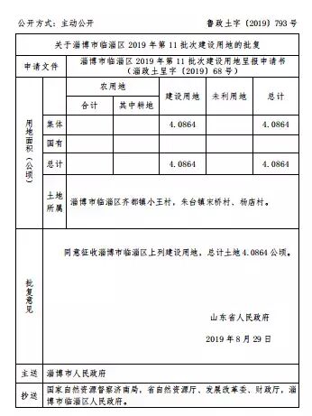 同意征收淄博市临淄区上列农用地、建设用地、未利用地,总计土地28.6662公顷。 齐都镇小王村、朱台镇宋桥村、杨店村...