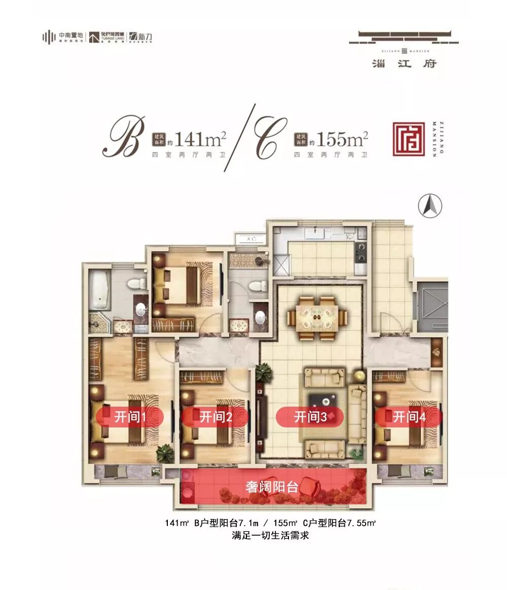 淄江府建面约141㎡/155㎡的格调四居刚刚好,南向4开间,整体采光面极大,南向奢阔阳台,满足一切生活需求,让亲人不必蜗居,让生活不再局促,容纳全家人的梦想生活,让人生有更多可能。