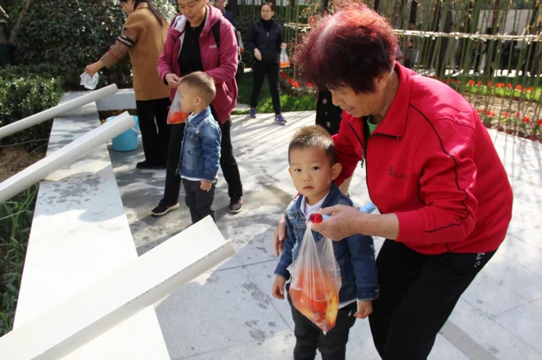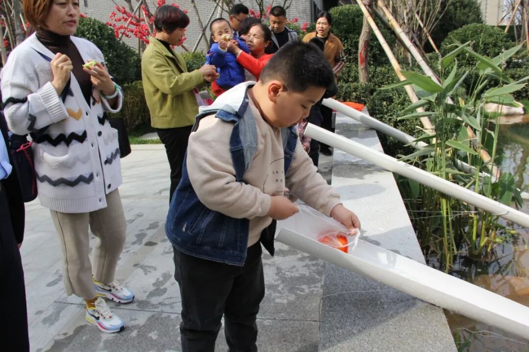 上午10点,业主们如约来到方正·中轩御景中央景观区领取福鱼。看着大家的热情洋溢的脸庞,鱼儿们也蹦跳的格外欢快。