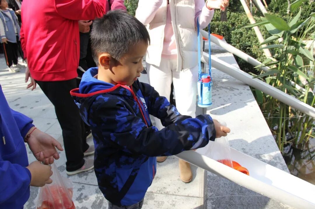 活动现场,最积极、最活跃、最开心的,当属这些孩子们。大一些的孩子们很高兴地自己在湖边放生,小一些的孩子们都乖乖地跟随着父母依次放生,看着从自己手中放下去的鱼儿在水中摇摆。