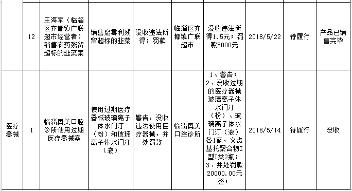 淄博食药监部门发布5月份行政处罚信息,百余家食品药品单位上榜!食品添加剂超标、农药残留超标,售卖过期食品,使用过期医疗器械……