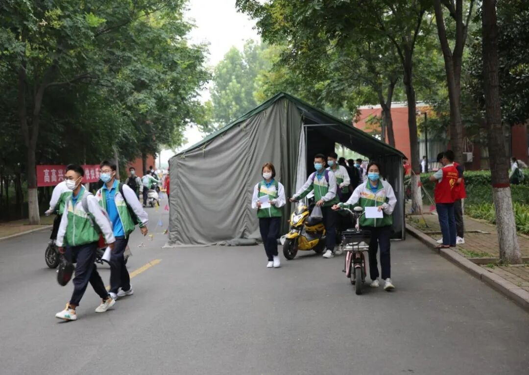 学生采用错时、错峰、分部的方式入校,避免人员聚集扎堆,由教师志愿者核验暑期健康管理及出行情况摸排表,然后经过学校测温棚测量体温,有序进入校园。
