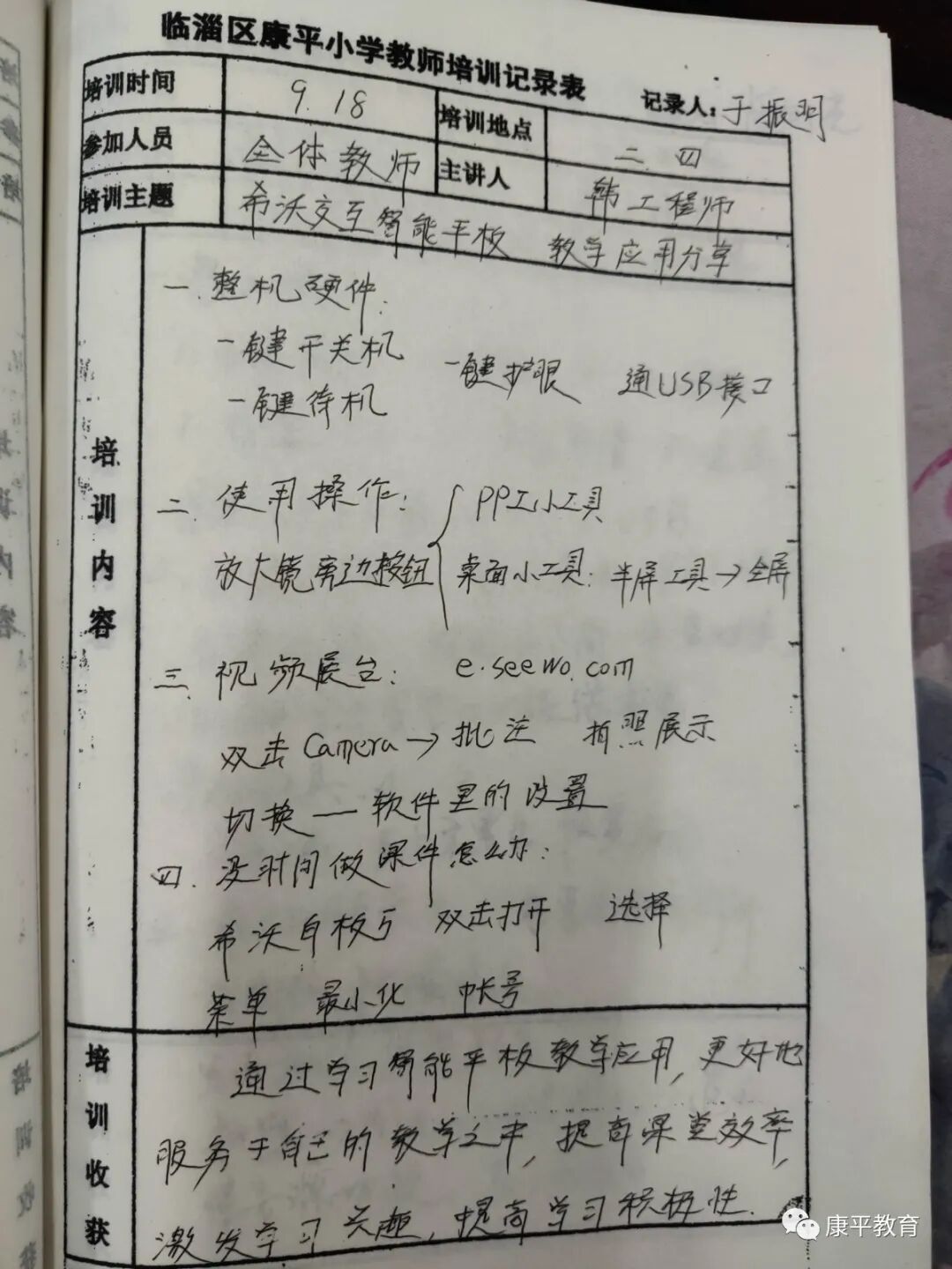 为进一步推进学校信息化教学,帮助教师在掌握多媒体技术的同时能熟练地操作、运用教辅工具,切实提高教师现代化教学技术水平,近日,临淄区康平小学特邀请希沃公司的韩工程师对全体教师进行“交互式多媒体一体机”在教学中使用的培训。