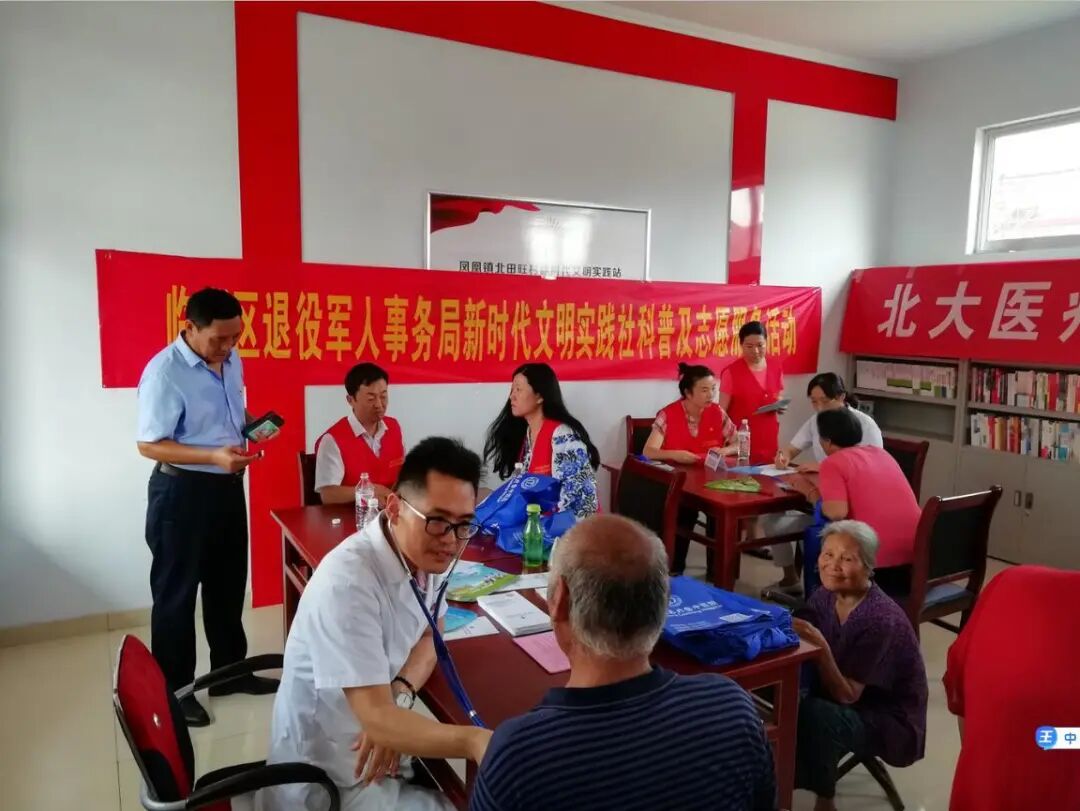 临淄区退役军人事务局联合北大医疗鲁中医院走进凤凰镇北田旺村,为居民现场发放了健康知识宣传资料,并提供测血糖、量血压等服务,针对中老年人心脑血管疾病、冠心病、高血压、高血脂、糖尿病等多发病进行了健康知识普及,对村民们提出的各种疑问进行了通俗易懂的解释,并一对一地提供健康指导。